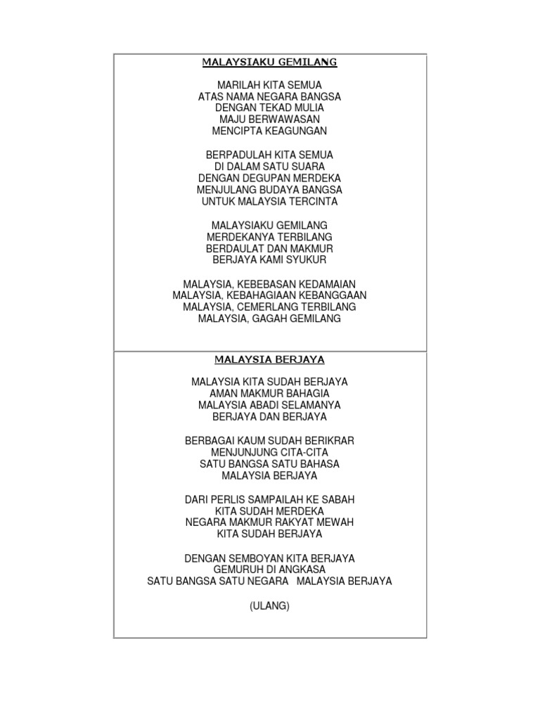 Lagu Yayasan Perak Yayasan Perak from yayasanperak.gov.my Dapatkan lirik lagu lain oleh closehead di kapanlagi.com. Karir gemilang rendy pandugo sebagai pencipta lagu. Loading the chords for 'cemerlang gemilang terbilang lirik lagu patriotik'. Lyrics for cemerlang, gemilang & terbilang by solehah. Chord gitar dan lirik lagu nike ardilla seberkas sinar. Lagu patriotik malaysia cemerlang gemilang terbila. Andai hidup tak punya cinta pada bangsa maupun wanita hidup tak punya ertinya kenikmatan tidak dirasa. .dipandang mulia cemerlang gemilang terbilang negara dan juga bangsa mari buktikan pada dunia malaysiaku berjaya cemerlang gemilang terbilang lagu :